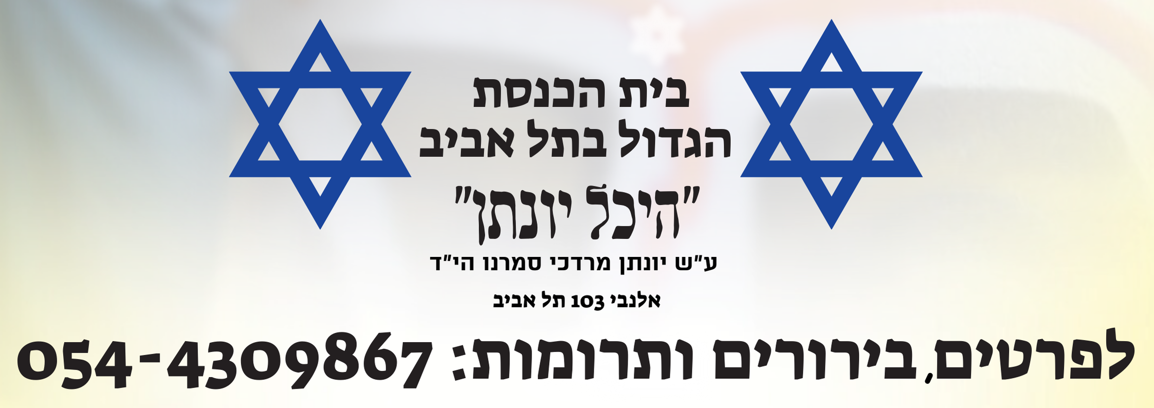 Shacharit: ימים: א', ג', ד'- 7:15. ימים ב', ה'- 7:10 (יום ו' סגור)